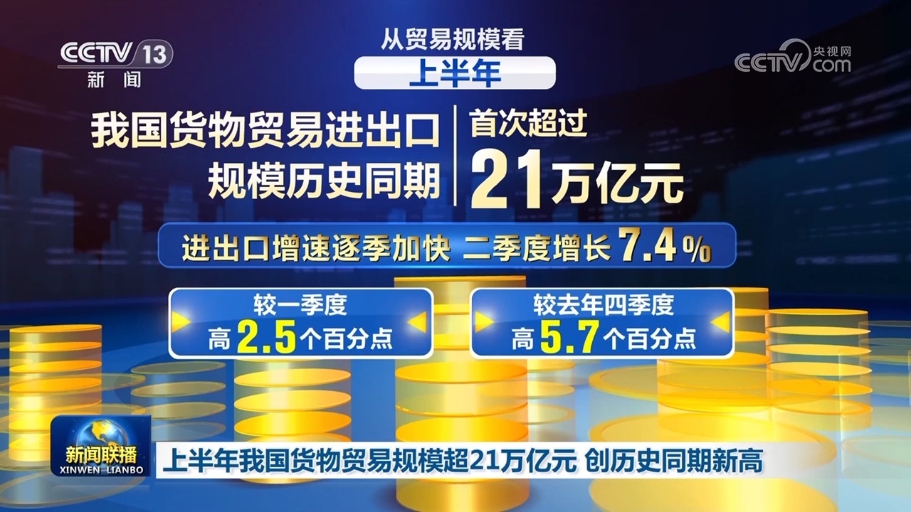 上半年我國貨物貿(mào)易規(guī)模超21萬億元 創(chuàng)歷史同期新高