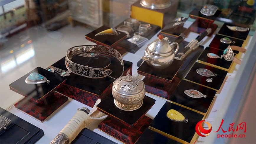 街上的“守藝”工作室里游客絡繹不絕,項鏈、手鏈、耳飾等蒙古族銀飾令人目不暇接。作品傳承了蒙古族銀飾,融合各民族文化的元素,每一件飾品都是特別精致的藝術品。據(jù)店主蘇力迪介紹,這里制作的手工藝品已遠銷東南亞。