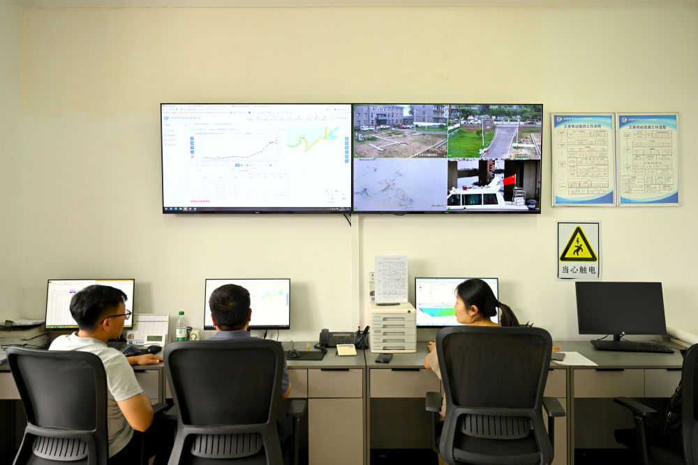 7月14日,王家壩水文站工作人員在監(jiān)測(cè)淮河水情。新華社記者黃博涵 攝