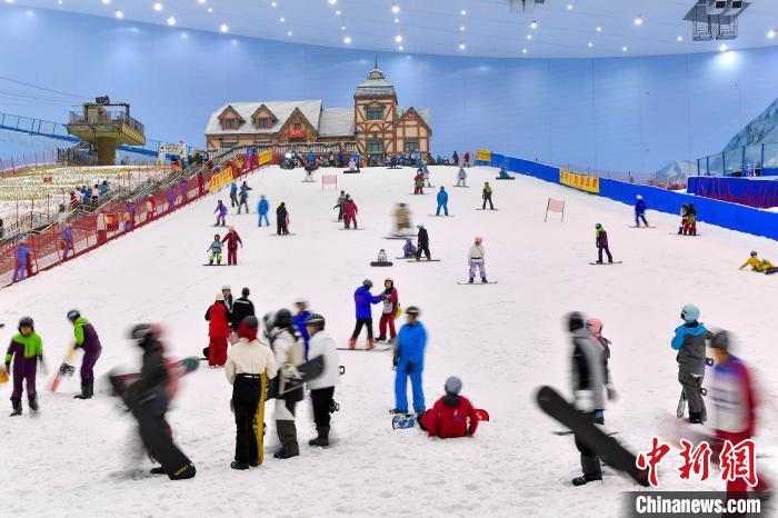 2024年1月14日,廣東省廣州市,民眾在熱雪奇跡室內(nèi)滑雪場(chǎng)練習(xí)滑雪,感受冰雪運(yùn)動(dòng)的魅力。 記者 陳驥旻 攝