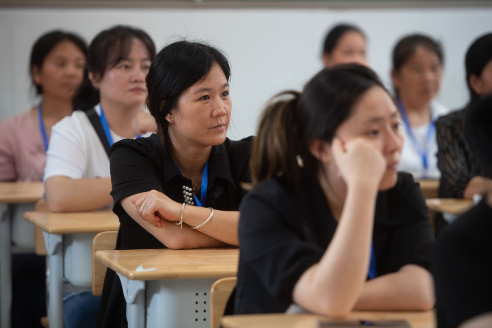 7月2日,湖北省來(lái)鳳縣高級(jí)中學(xué),學(xué)員們?cè)谖魈m卡普培訓(xùn)班聽(tīng)講。唐洪祥的孫女唐鳴珂為學(xué)員們講解西蘭卡普的知識(shí)。