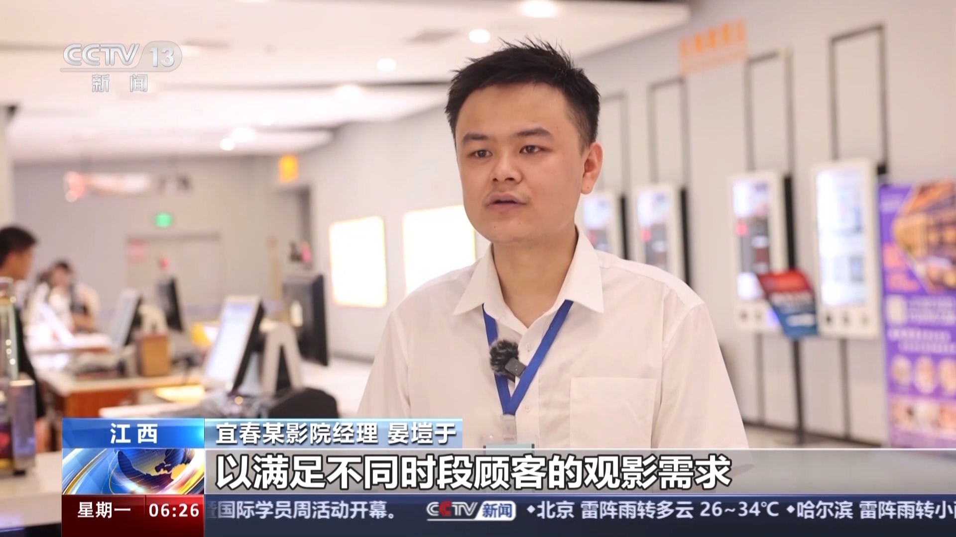 宜春某影院經(jīng)理 晏塏于:一方面,我們?cè)黾恿酥髁τ捌呐牌?,以滿足不同時(shí)段顧客的觀影需求;第二方面是我們影院增派了人手,提高了影城的接待能力和服務(wù)水平,減少顧客的排隊(duì)等待時(shí)間。
