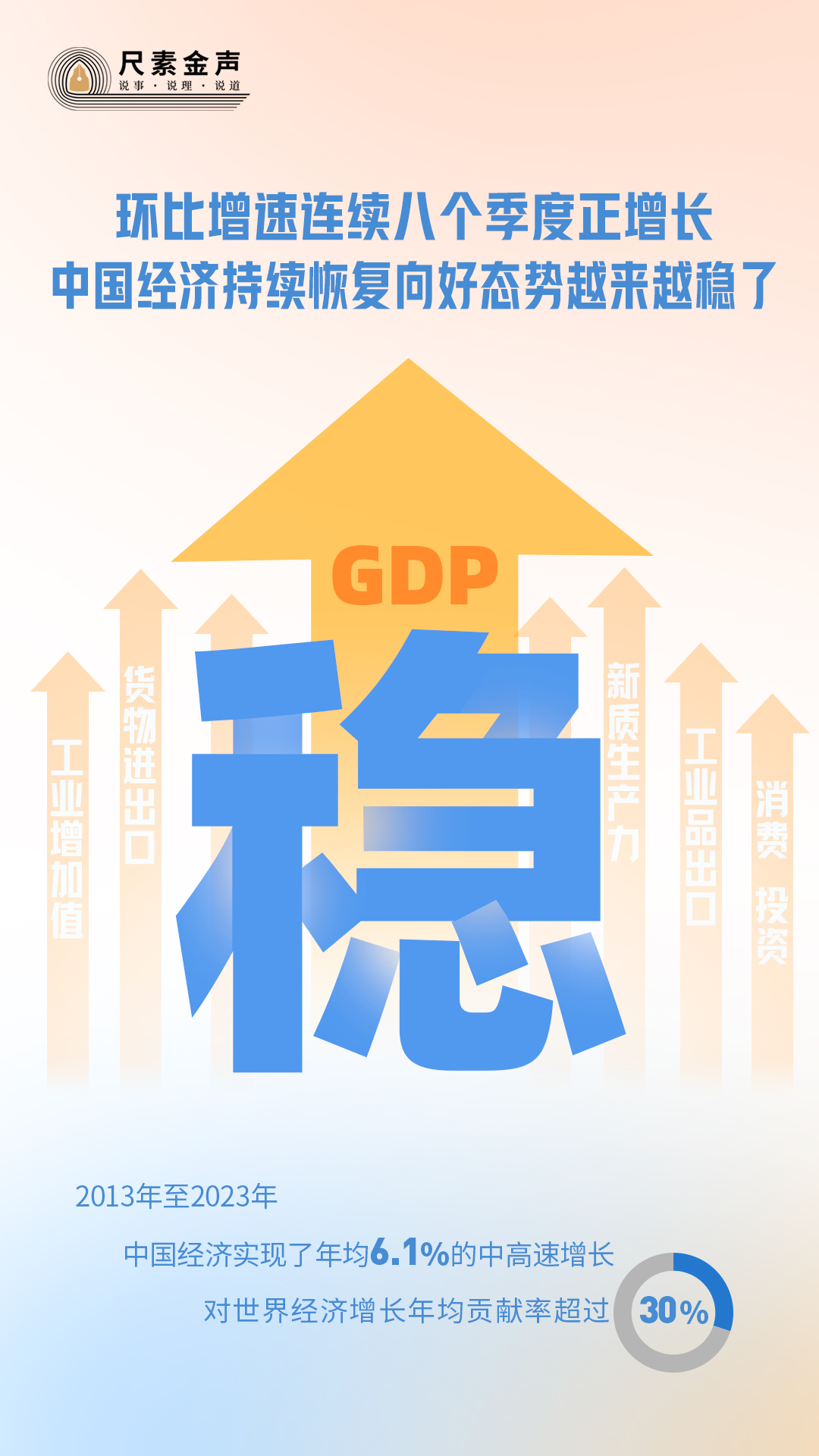 從環(huán)比看,2022年第三季度以來,中國的GDP環(huán)比增速已經(jīng)連續(xù)8個季度保持正增長,中國經(jīng)濟(jì)持續(xù)恢復(fù)向好的態(tài)勢越來越穩(wěn)了。