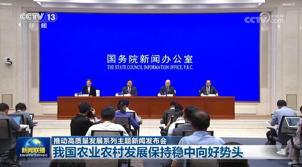 國務(wù)院新聞辦公室7月24日舉行推動(dòng)高質(zhì)量發(fā)展系列主題新聞發(fā)布會(huì),農(nóng)業(yè)農(nóng)村部負(fù)責(zé)人介紹,黨的十八大以來,我國農(nóng)業(yè)農(nóng)村發(fā)展持續(xù)保持穩(wěn)中向好、穩(wěn)中提質(zhì)勢(shì)頭。