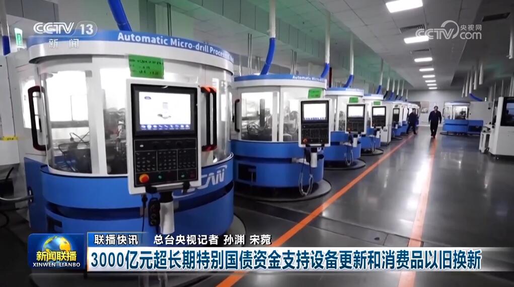 3000億元超長(zhǎng)期特別國債資金支持設(shè)備更新和消費(fèi)品以舊換新