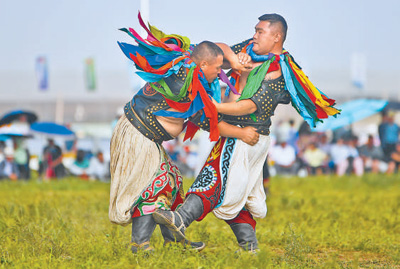 “搏克”即蒙古式摔跤,根據(jù)參賽選手?jǐn)?shù)量分為1024名搏克、512名搏克等比賽,2006年被列入第一批國(guó)家級(jí)非物質(zhì)文化遺產(chǎn)名錄。本屆搏克比賽歷時(shí)3天,賽場(chǎng)上,選手們身穿象征公平的開胸摔跤衣,通過摔、抱、拉、拽等技法,力圖將對(duì)手摔倒在地。