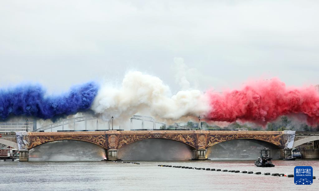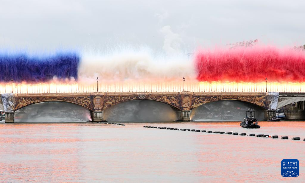 7月26日,開幕式上升起法國國旗。新華社發(fā)(POOL照片/洛伊克·韋南斯)