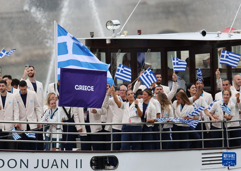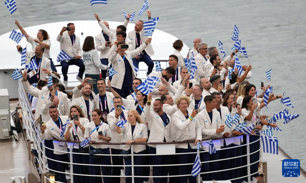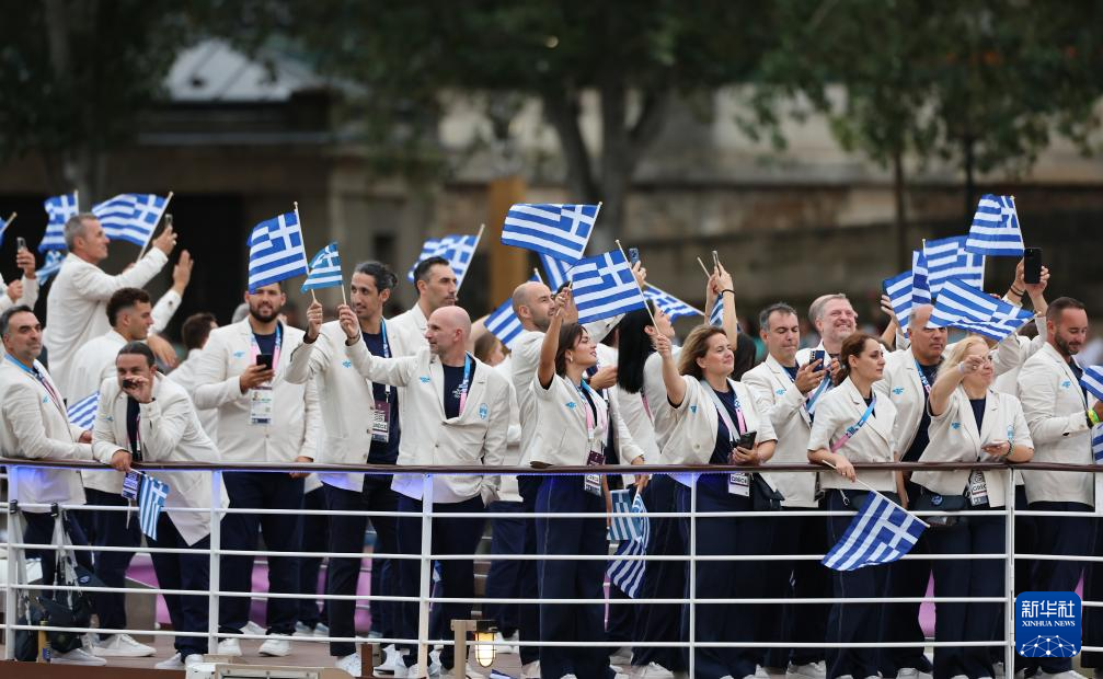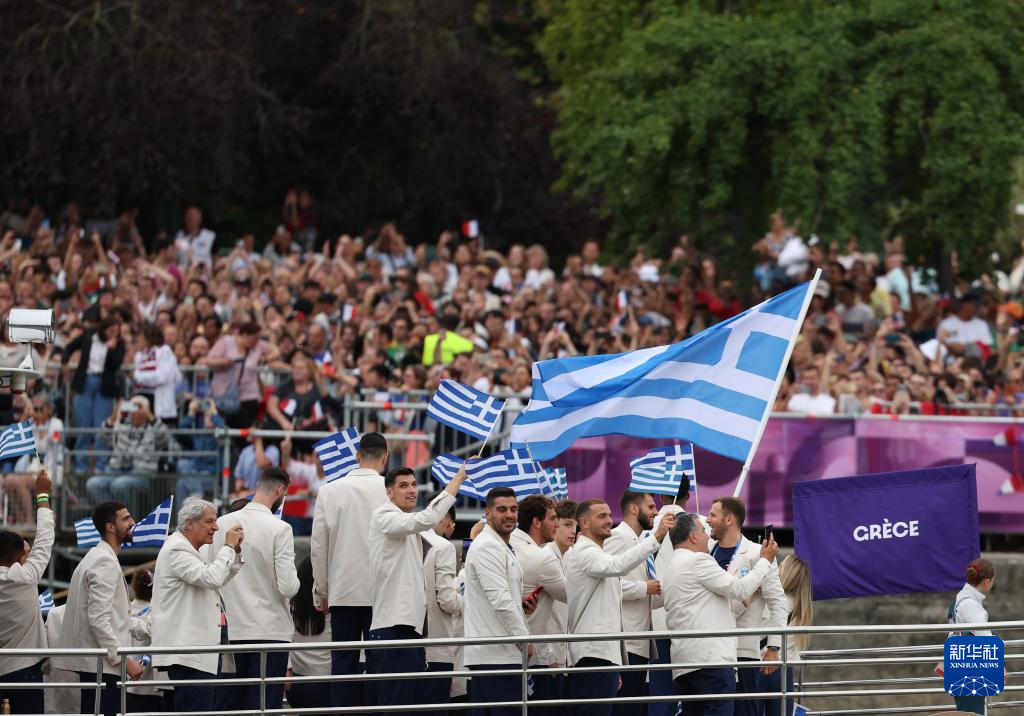 7月26日,希臘體育代表團在開幕式上。新華社記者 陳斌 攝