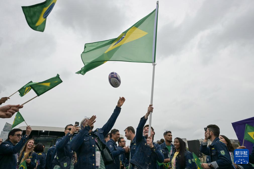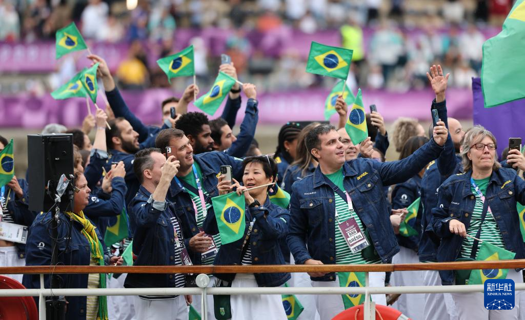 7月26日,巴西體育代表團成員在開幕式上。新華社記者 陳斌 攝
