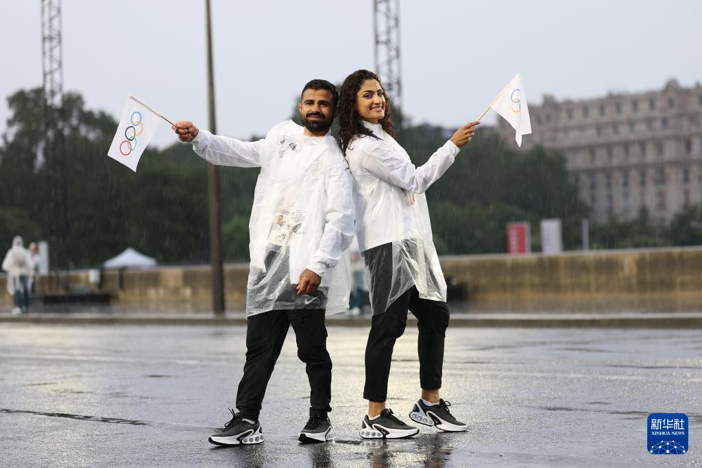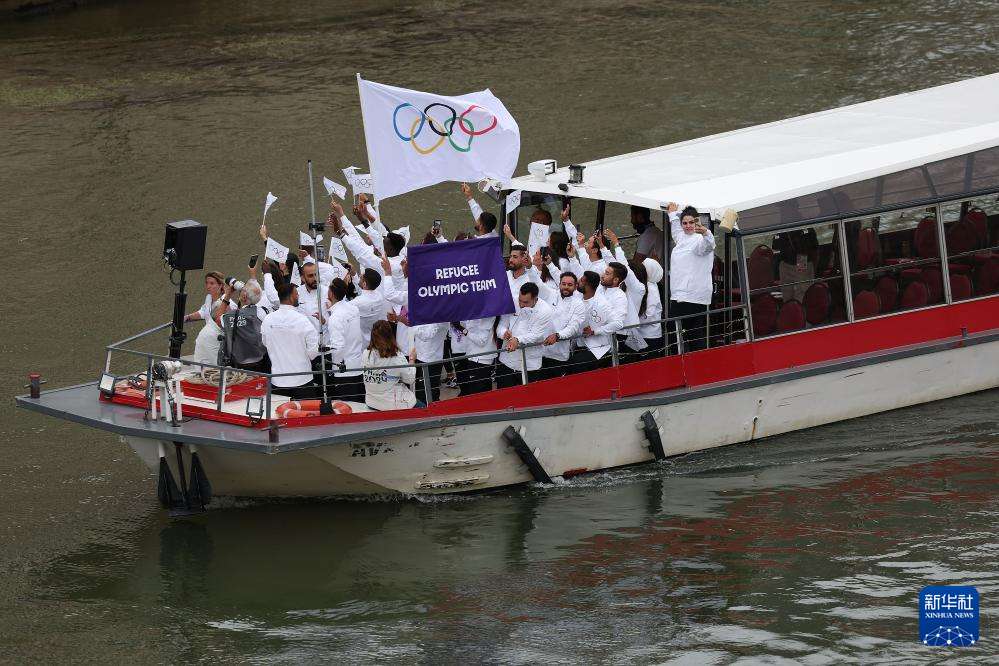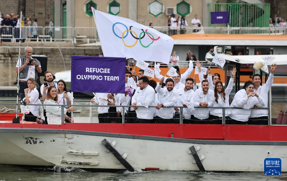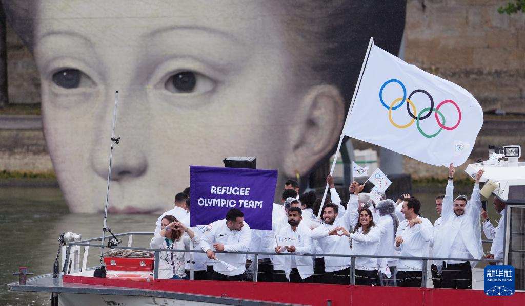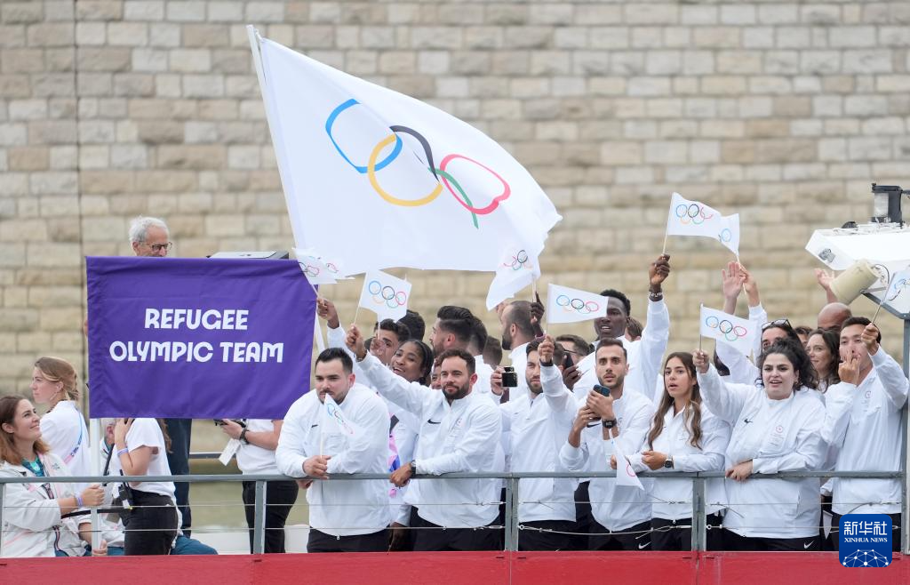 7月26日,難民體育代表團在開幕式上。新華社記者 任正來 攝
