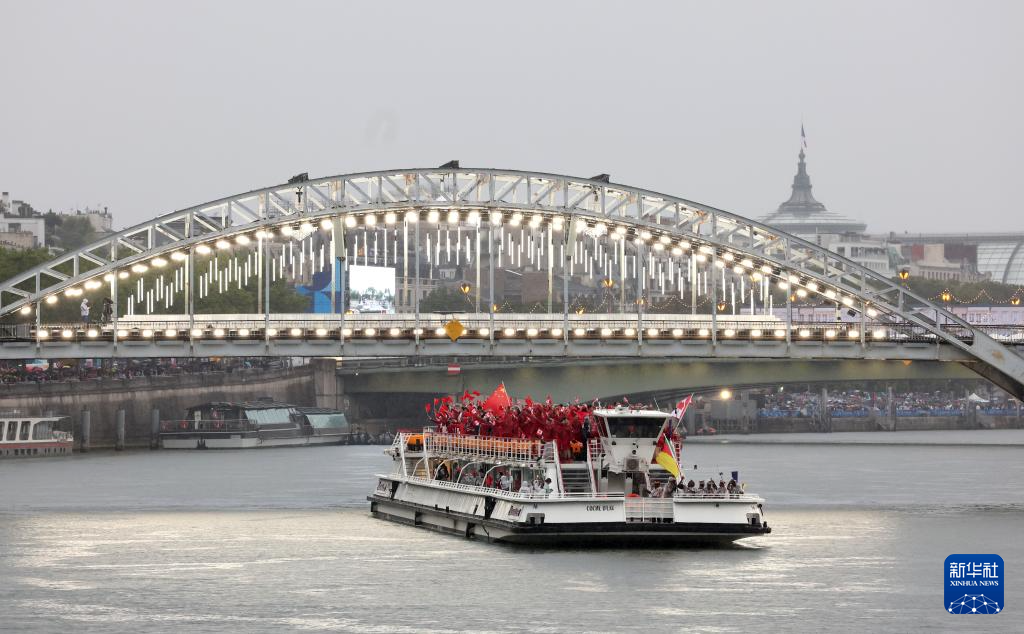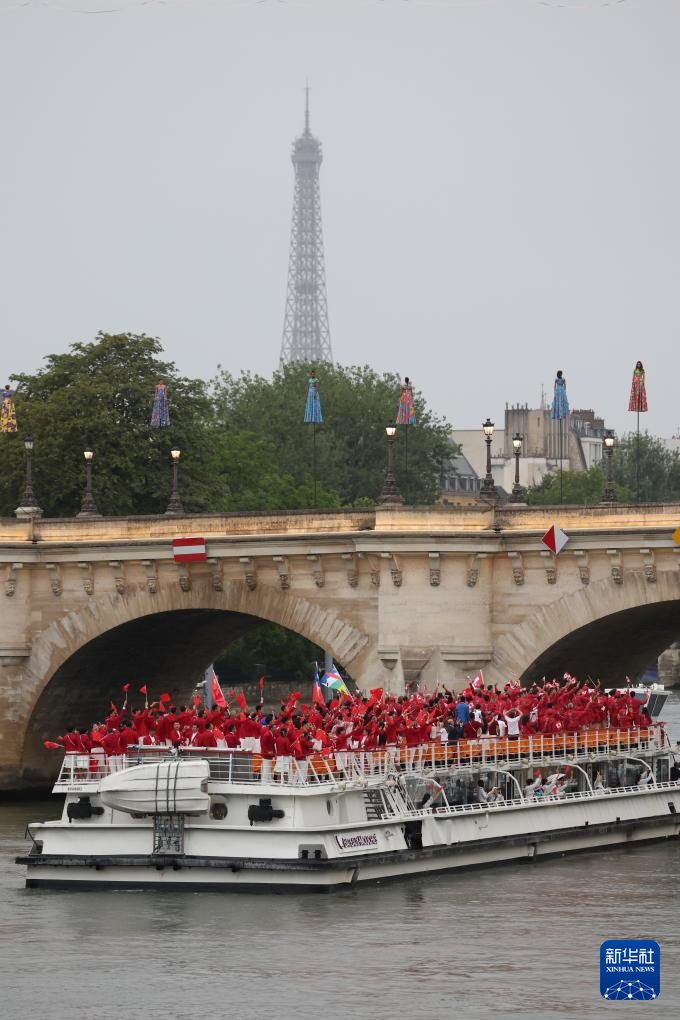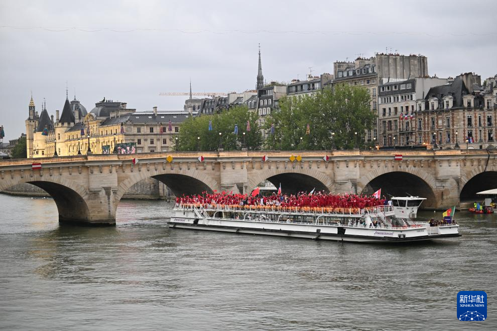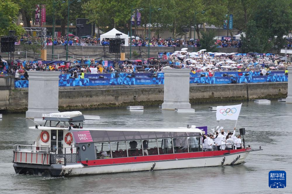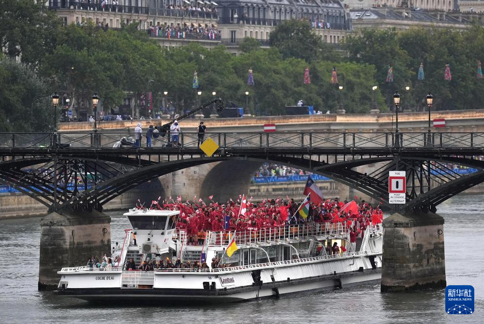 7月26日,各代表團成員在開幕式上抵達耶拿橋。新華社發(fā)(POOL照片/盧多維克·馬林)