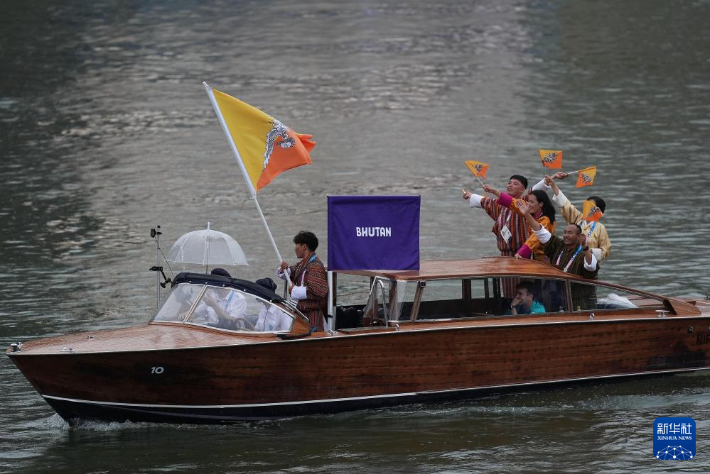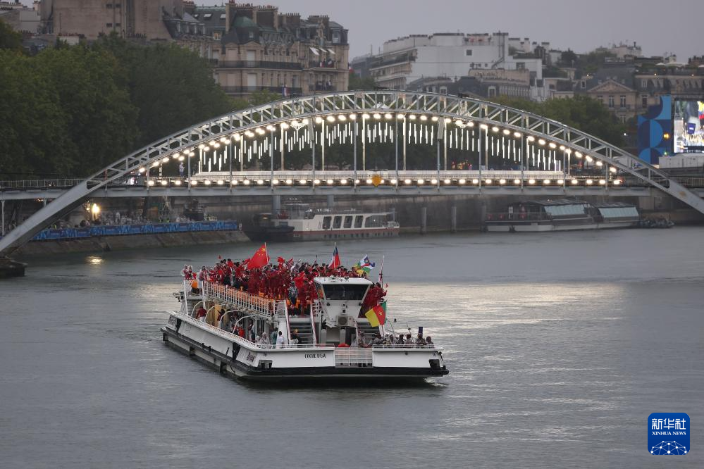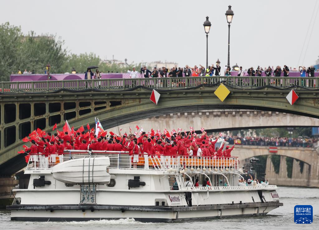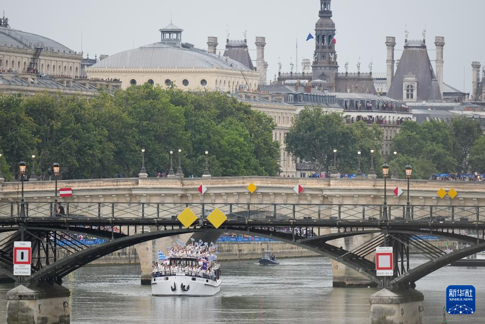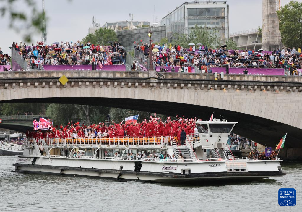 7月26日,各代表團成員在開幕式上抵達耶拿橋。新華社發(fā)(POOL照片/盧多維克·馬林)