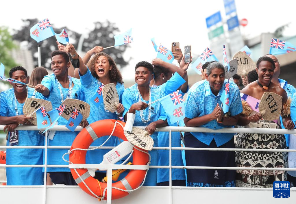 7月26日,斐濟體育代表團成員在開幕式上。新華社記者 呂小煒 攝