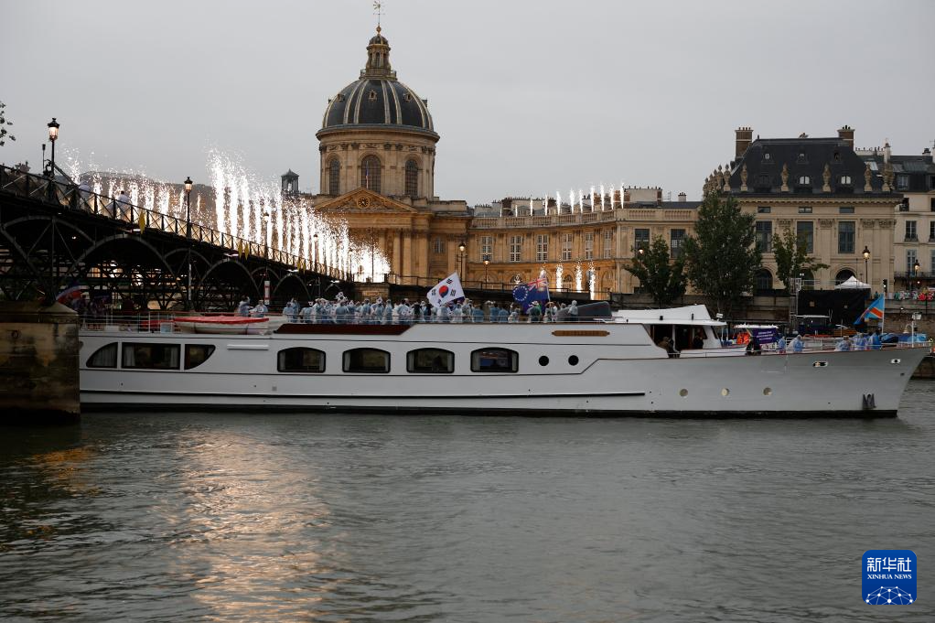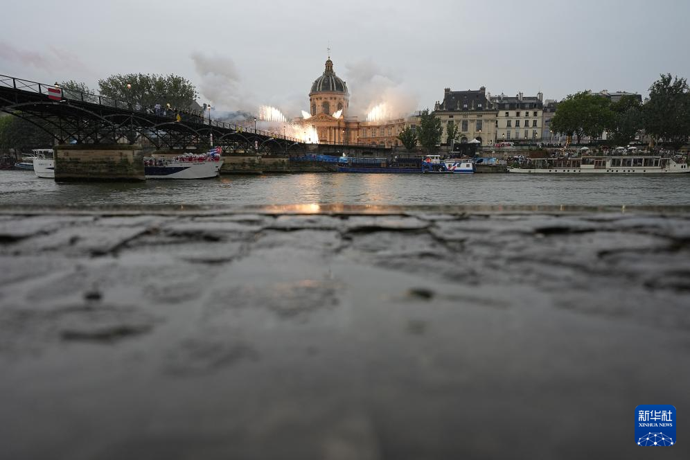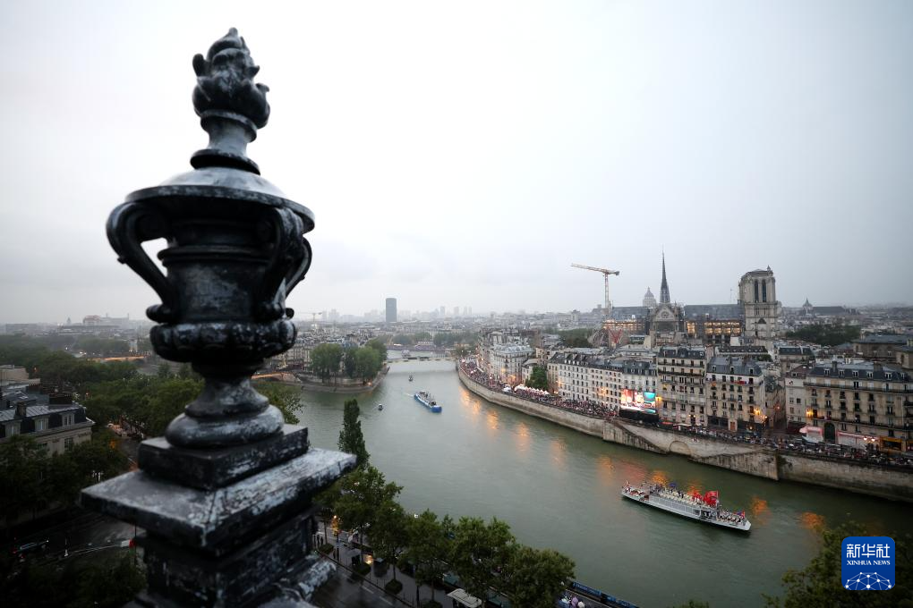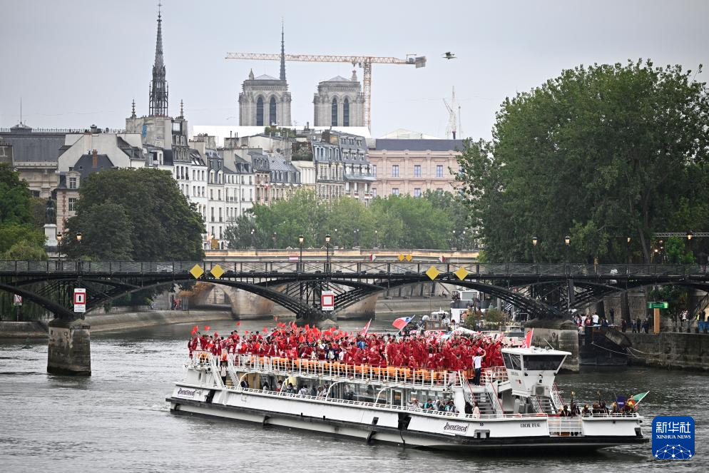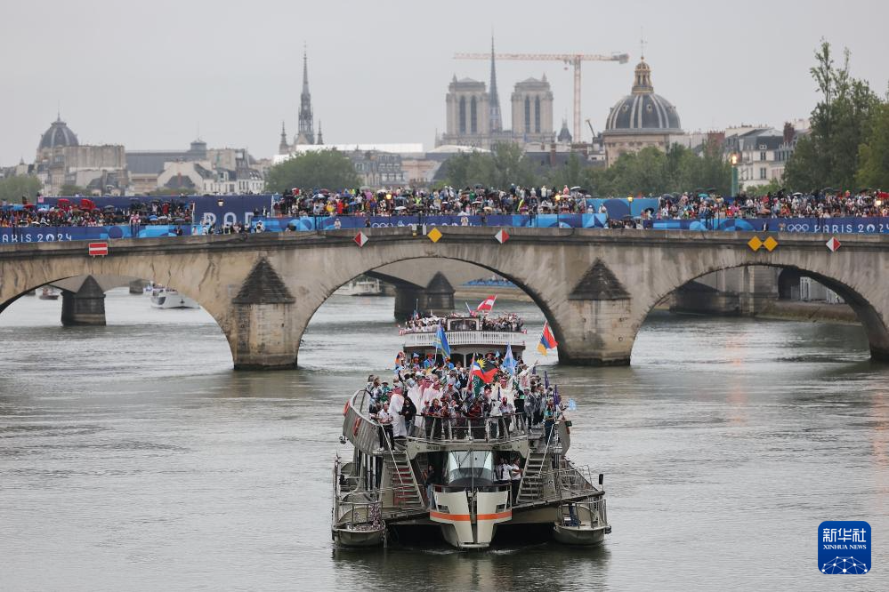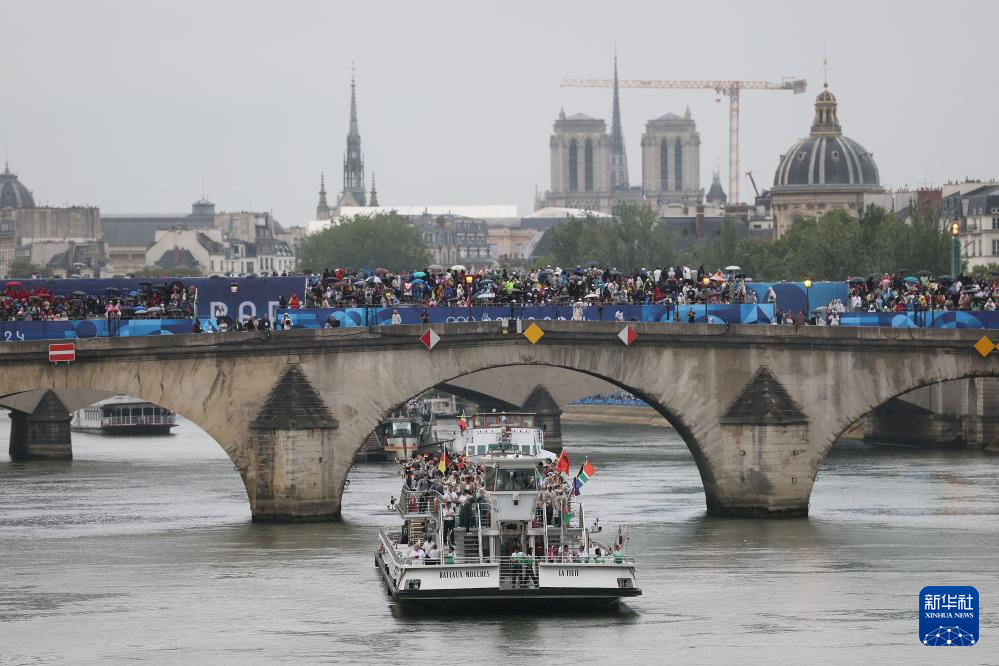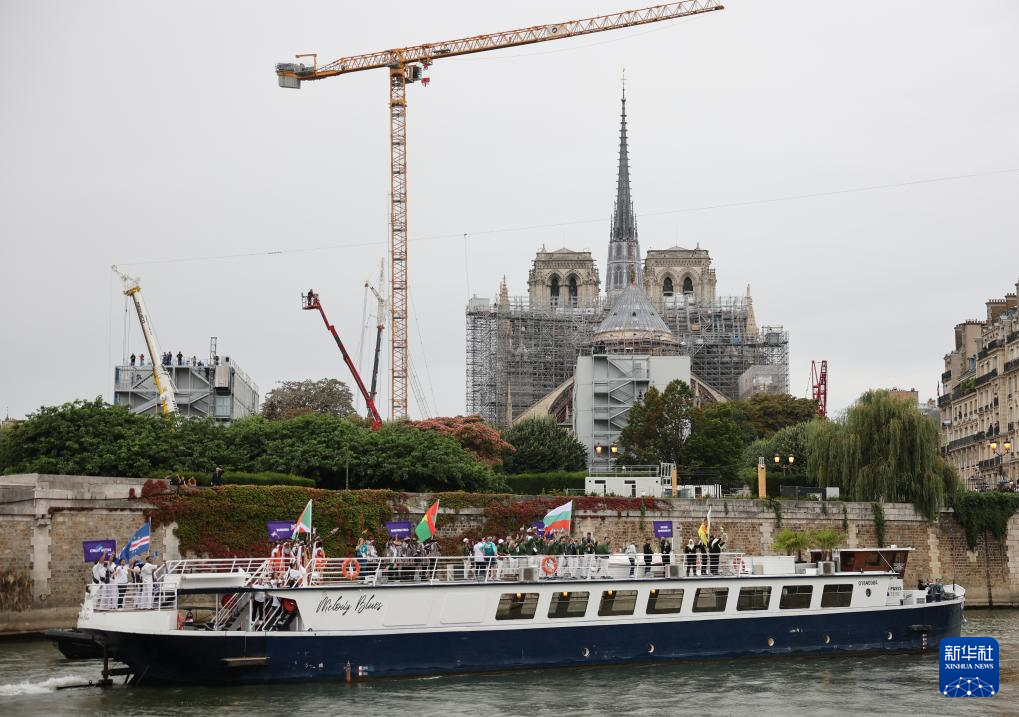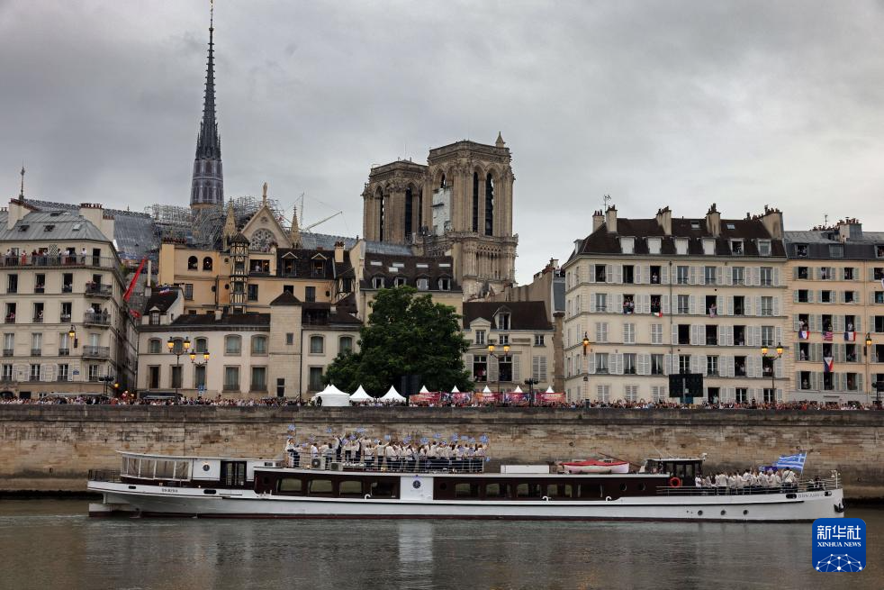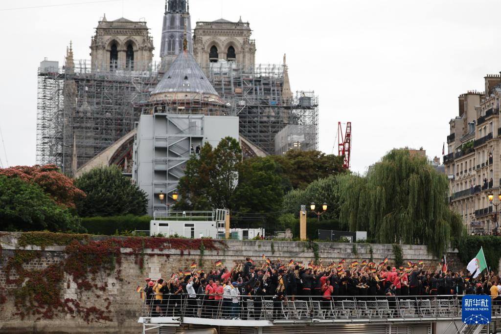 7月26日,各體育代表團在開幕式上,右側(cè)是巴黎圣母院。新華社發(fā)(POOL照片/丹·馬蘭)pagebreak