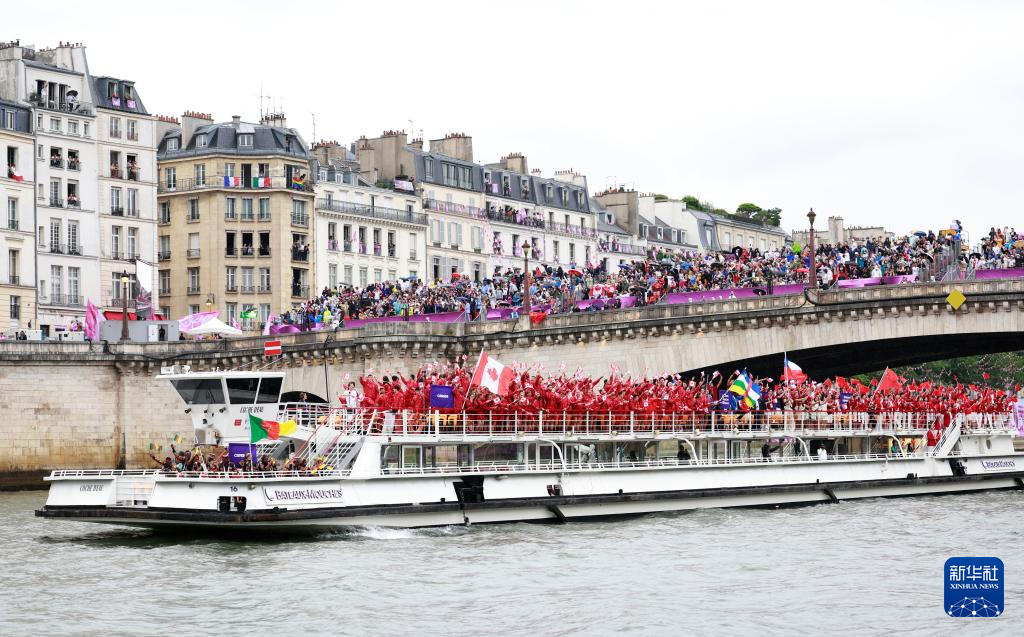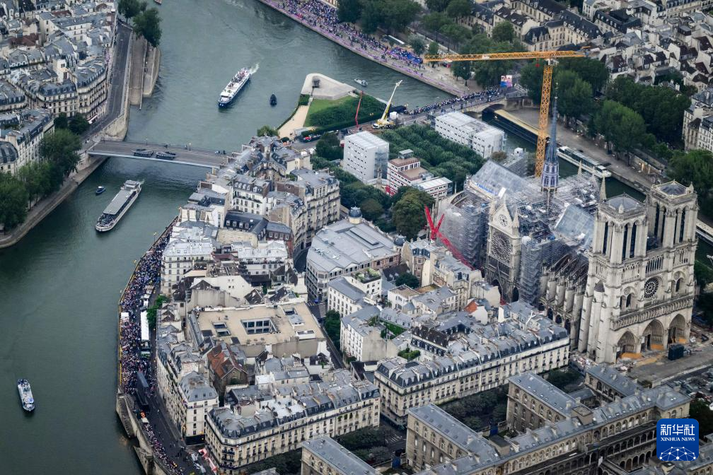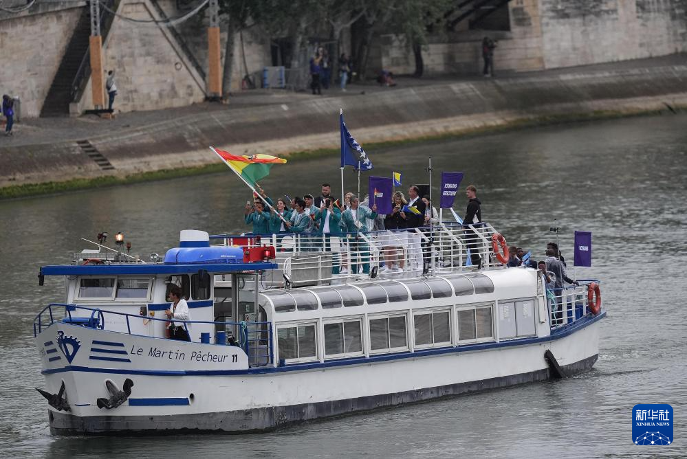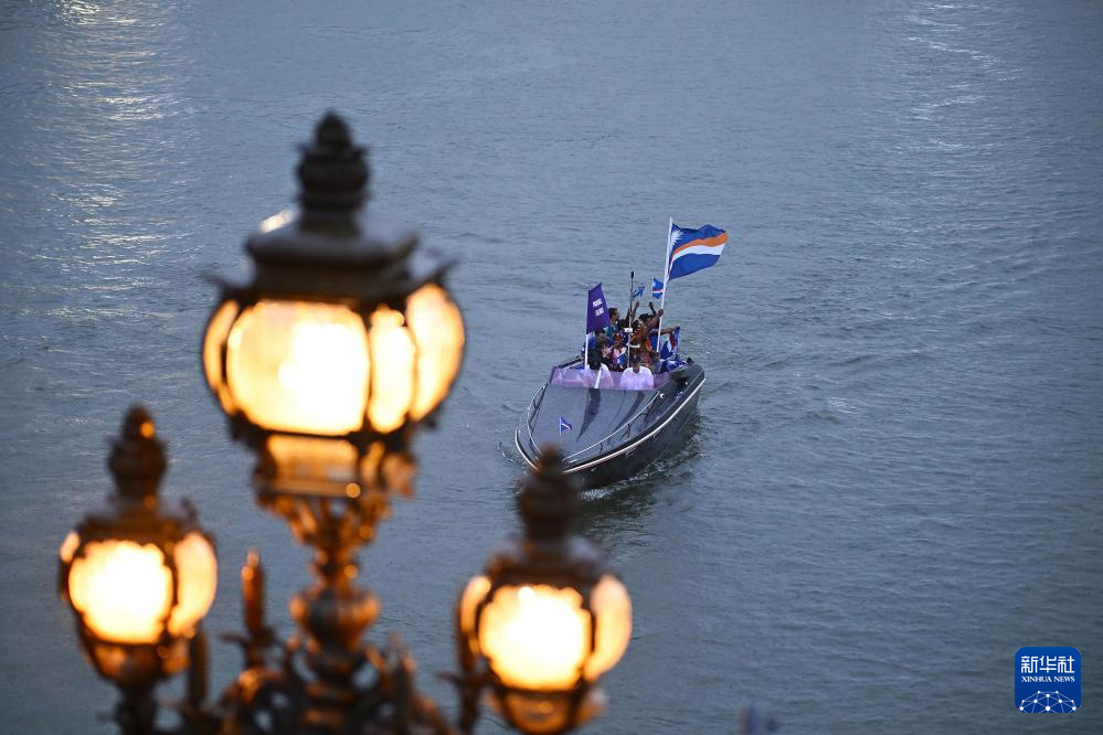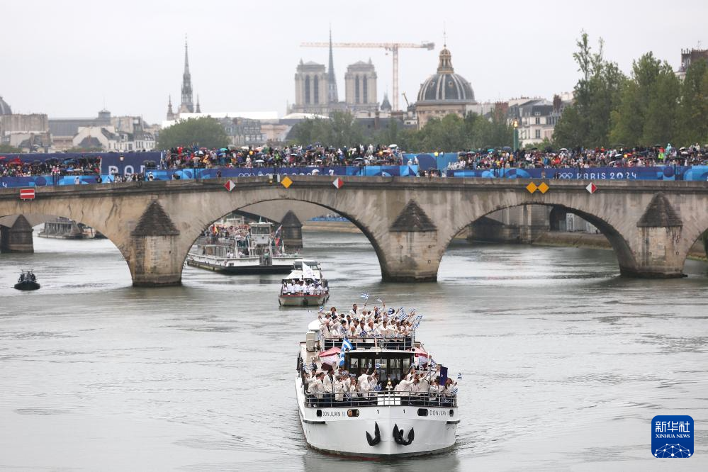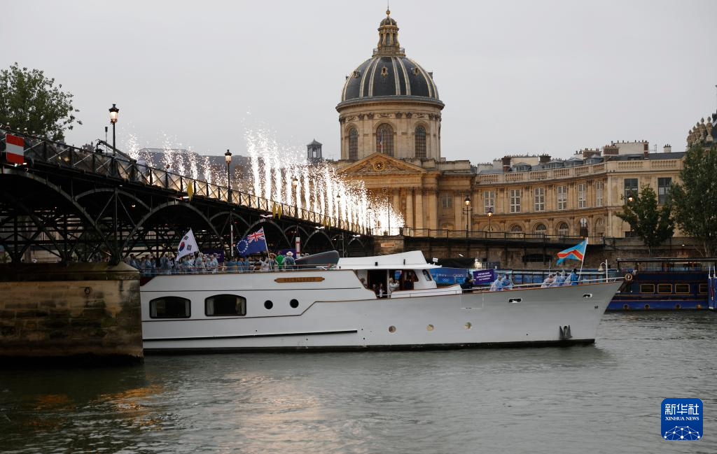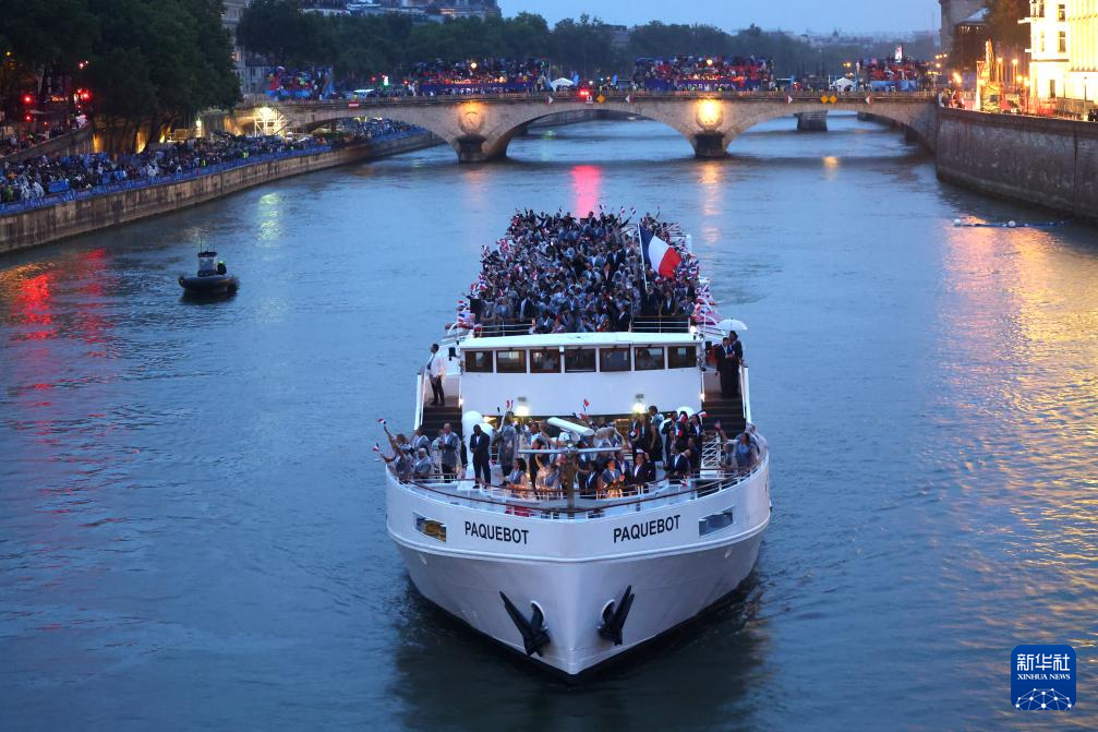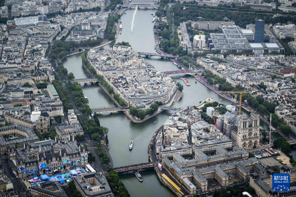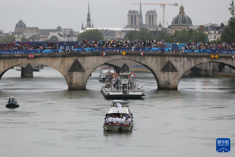 7月26日,各體育代表團在開幕式上,右側(cè)是巴黎圣母院。新華社發(fā)(POOL照片/丹·馬蘭)pagebreak