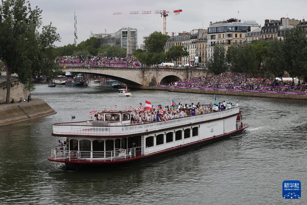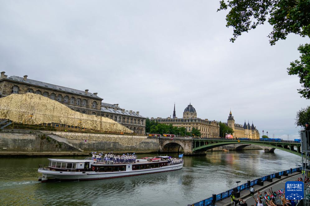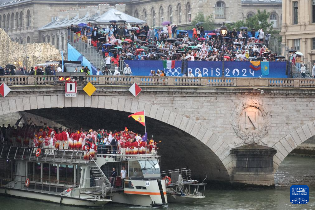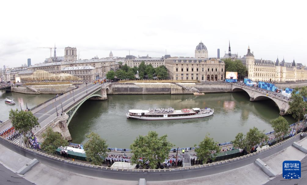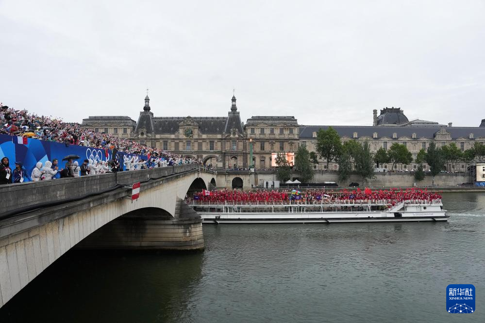 7月26日,觀眾在塞納河邊觀看開幕式。新華社記者 任正來 攝