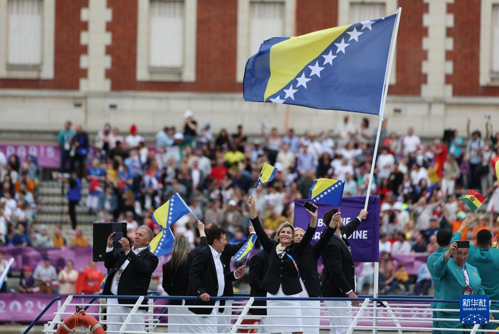 7月26日,波斯尼亞和黑塞哥維那體育代表團在開幕式上。新華社記者 王東震 攝
