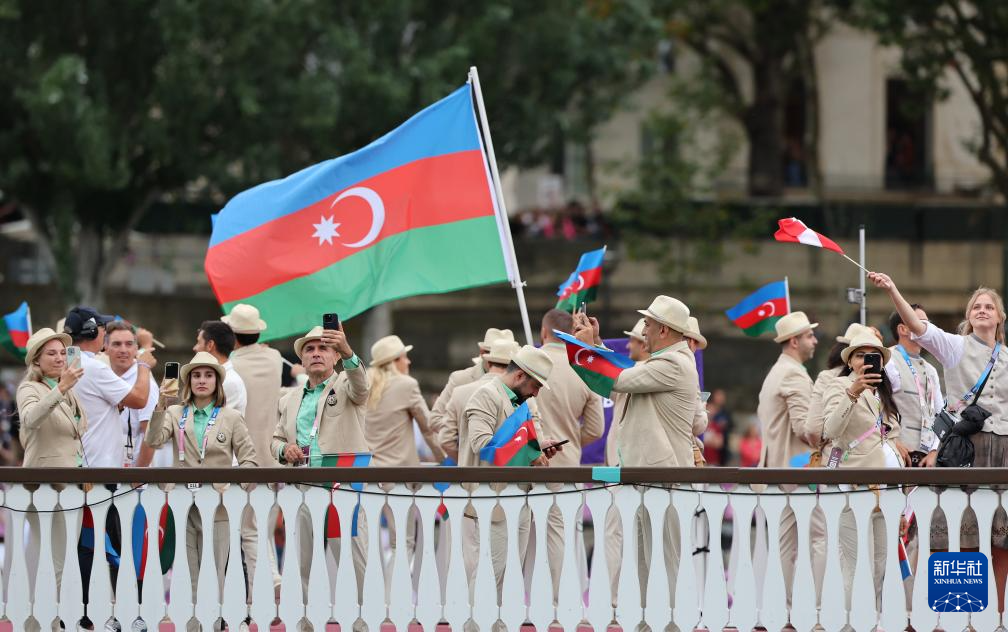 7月26日,阿塞拜疆體育代表團成員在開幕式上。新華社記者 王東震 攝