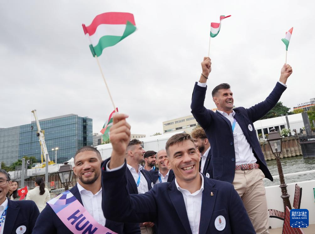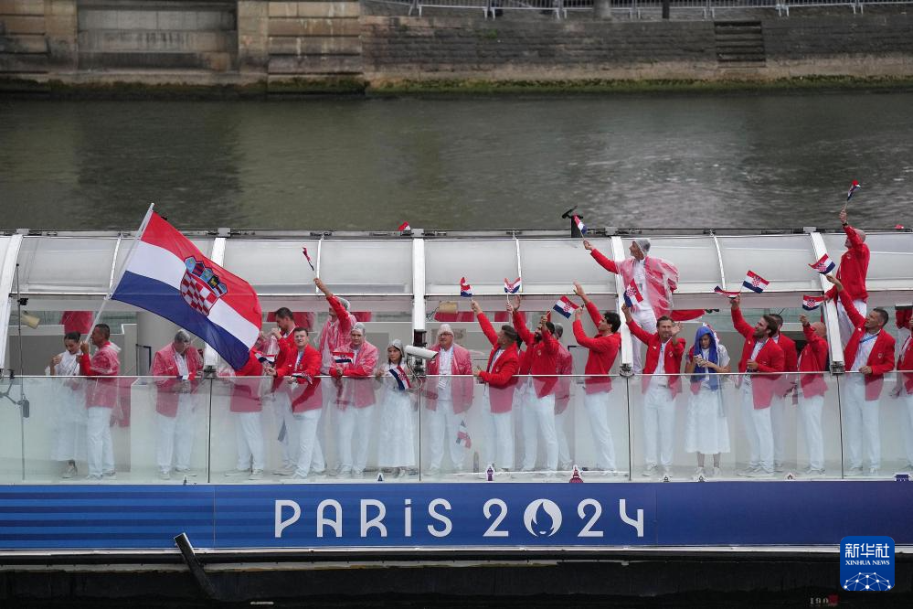 7月26日,克羅地亞體育代表團成員在開幕式上。新華社發(fā)(POOL照片/克洛達赫·基爾科因)pagebreak