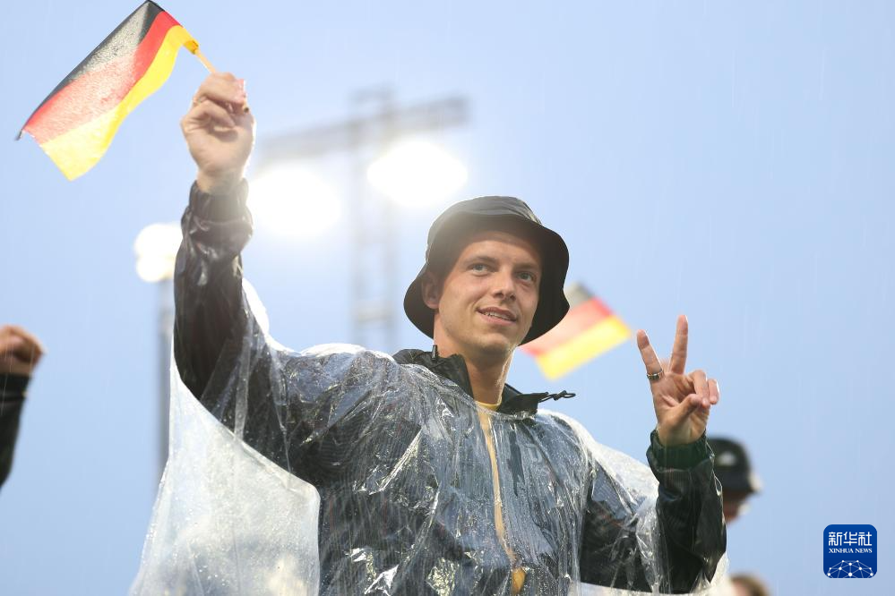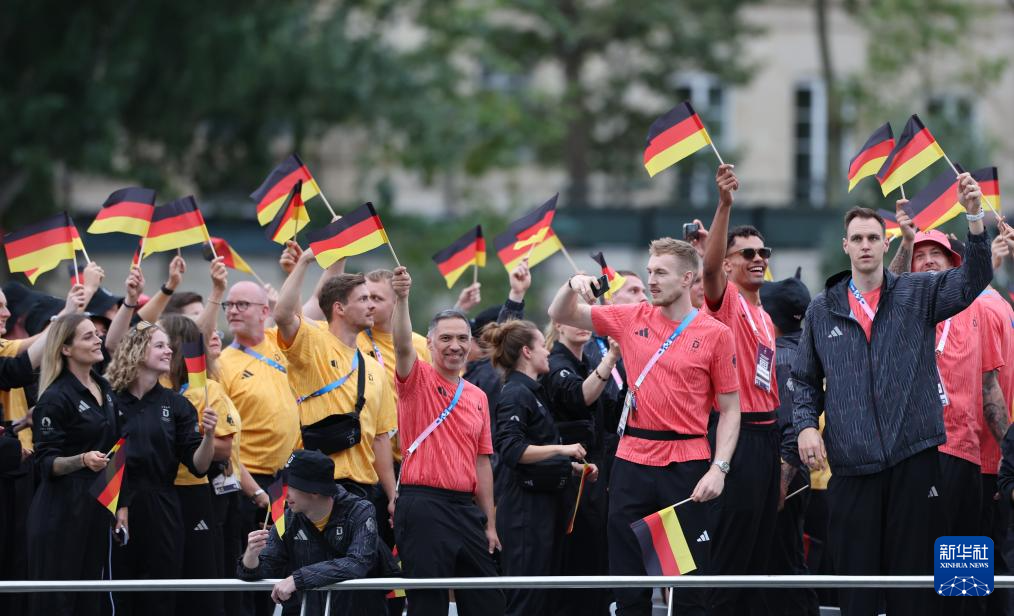 7月26日,德國體育代表團成員在開幕式上慶祝。新華社記者 李明 攝pagebreak