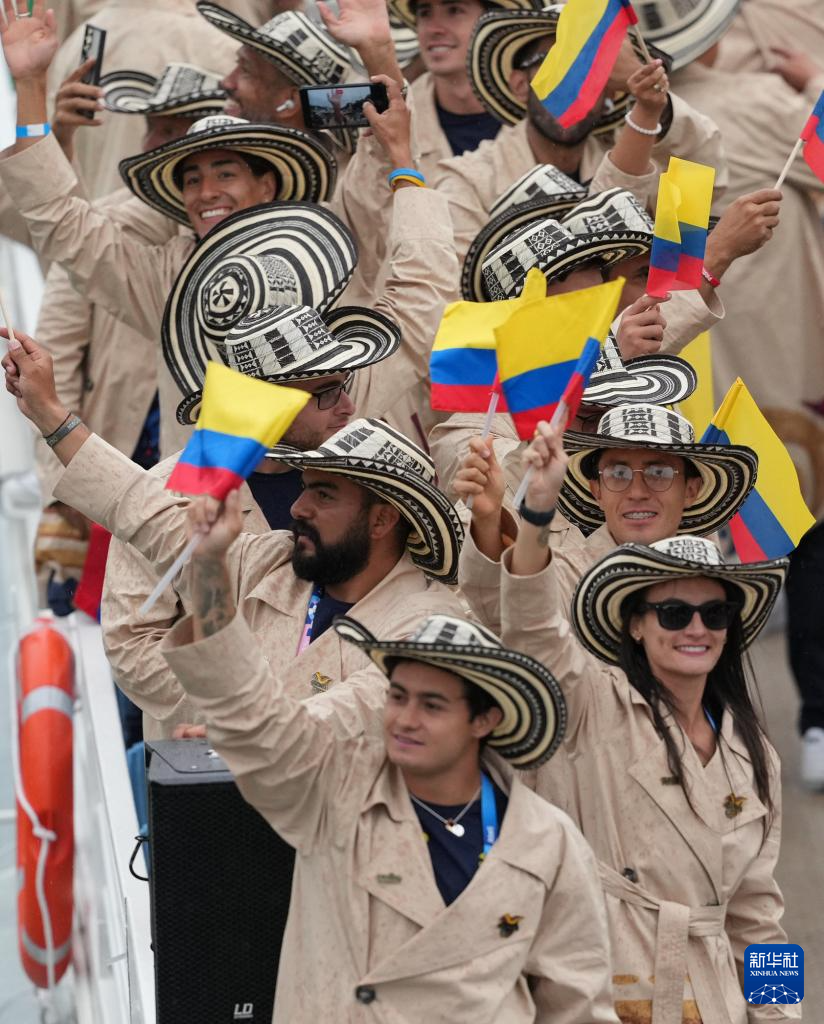 7月26日,安提瓜和巴布達、沙特阿拉伯、阿根廷、亞美尼亞、阿魯巴體育代表團在開幕式上。新華社記者 張玉薇 攝