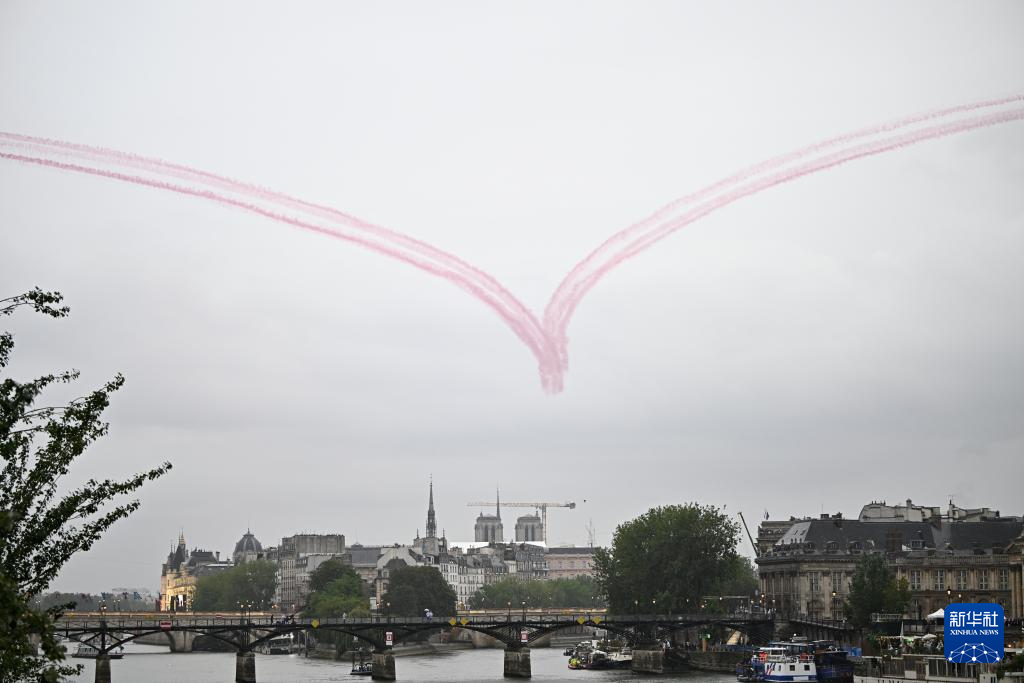7月26日,飛機在開幕式上表演。新華社發(fā)(POOL照片/克洛達赫·基爾科因)pagebreak