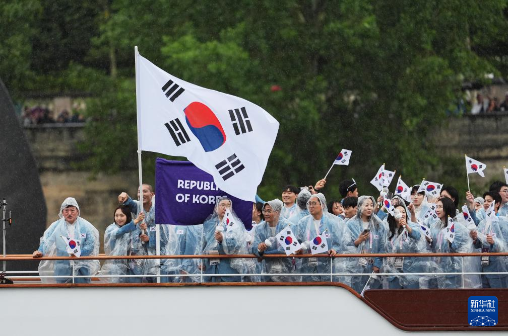 7月26日,韓國體育代表團在開幕式上。新華社記者 江文耀 攝