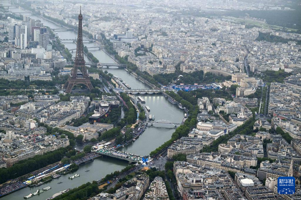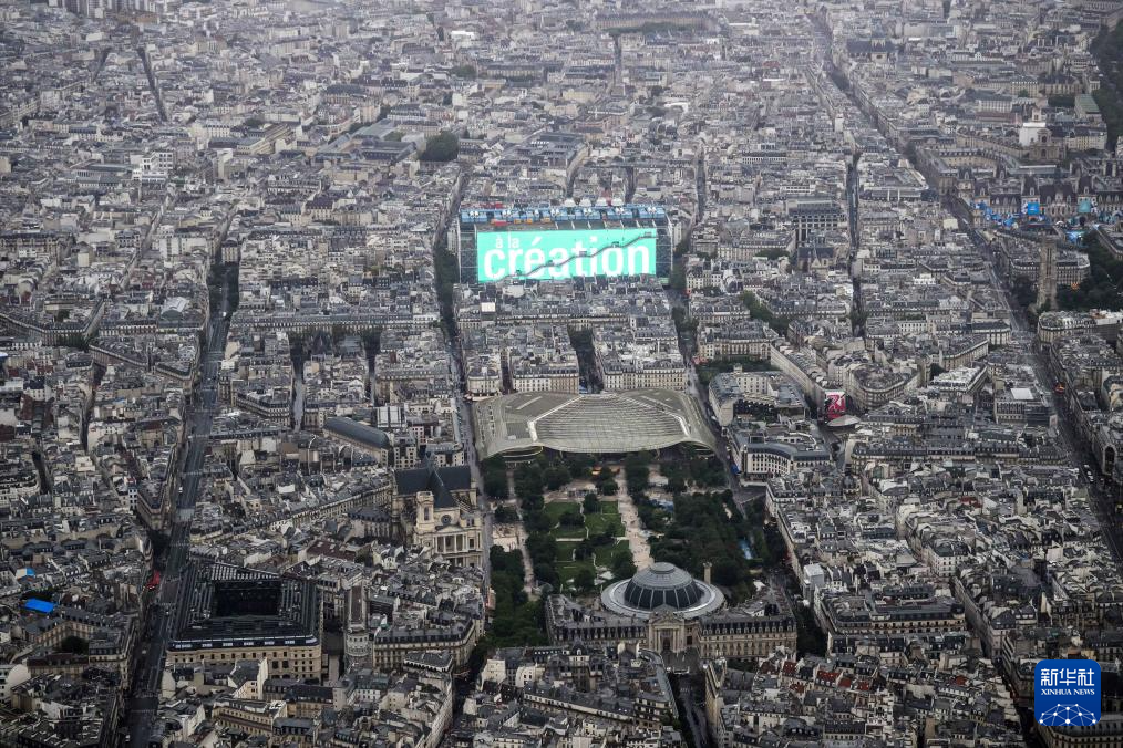 俯瞰開幕式上的埃菲爾鐵塔和戰(zhàn)神廣場(7月26日攝)。新華社發(fā)(POOL照片/利昂內(nèi)爾·博納旺蒂爾)