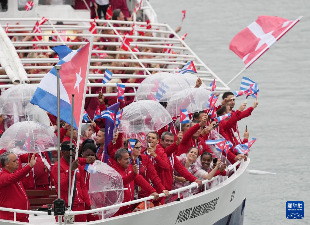 7月26日,各體育代表團在開幕式上。新華社發(fā)(POOL照片/利昂內(nèi)爾·博納旺蒂爾)