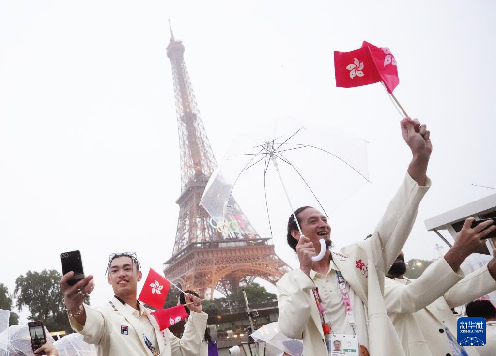 7月26日,中國香港體育代表團在開幕式上。新華社記者 呂小煒 攝