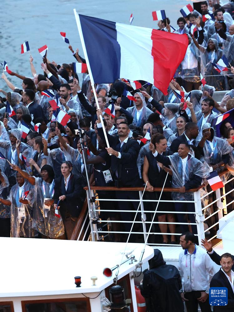 7月26日,法國體育代表團在開幕式上。新華社記者 郭昱 攝