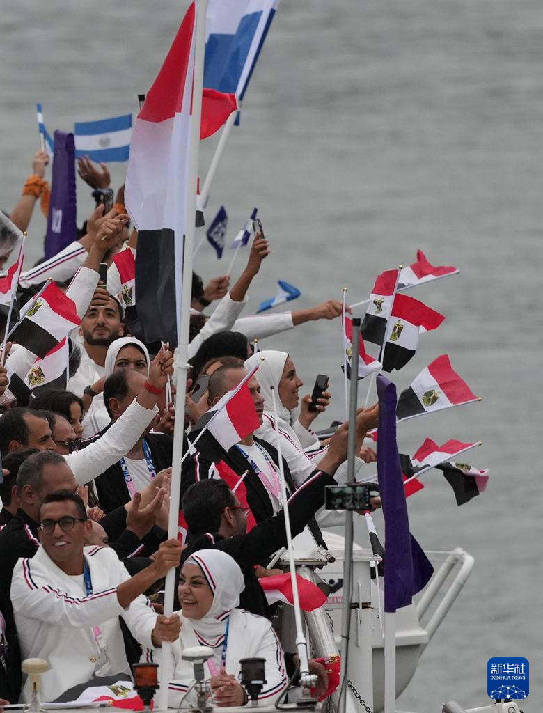 7月26日,埃及體育代表團成員在開幕式上慶祝。新華社記者 李明 攝