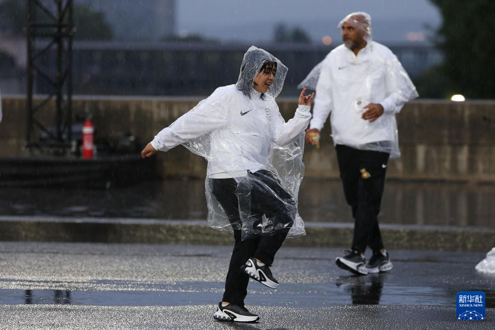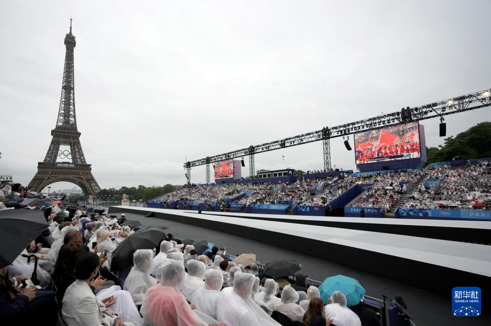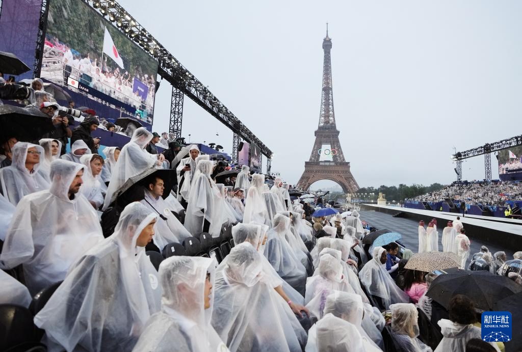 7月26日,觀眾在雨中觀看開幕式。新華社發(fā)(POOL照片/克洛達赫·基爾科因)