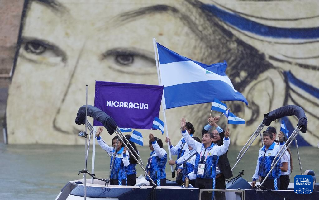 7月26日,尼加拉瓜體育代表團在開幕式上。新華社記者 江文耀 攝