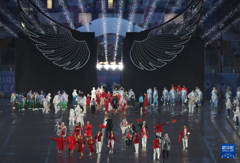 7月26日,各體育代表團在開幕式上。新華社發(fā)(POOL照片/里卡多·毛佐蘭)