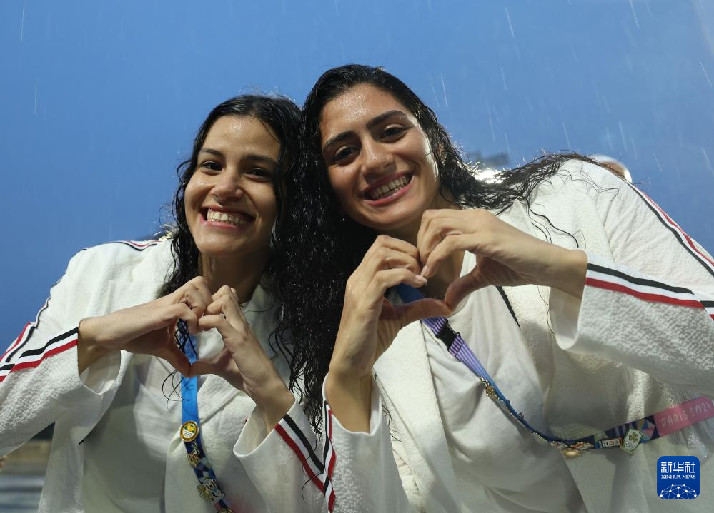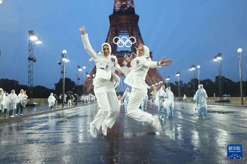 7月26日,埃及體育代表團成員在埃菲爾鐵塔前。新華社記者 李明 攝