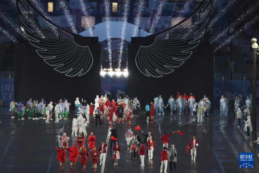 7月26日,中國體育代表團在開幕式上。新華社記者 萬象 攝