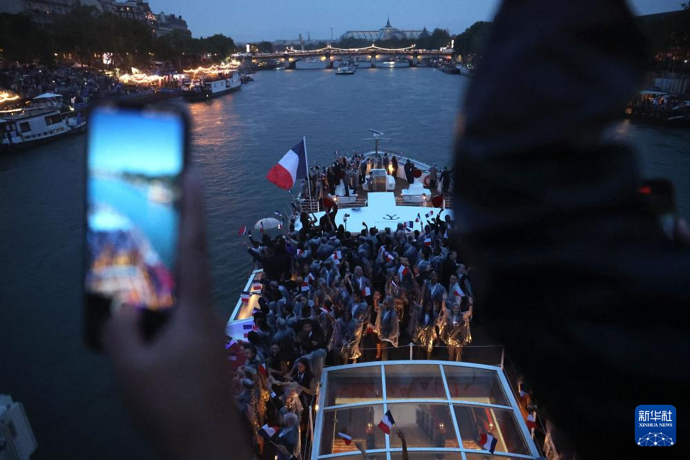 7月26日,法國體育代表團在開幕式上。新華社發(fā)(POOL照片/瑪?shù)稀っ芬疇枺?/p>