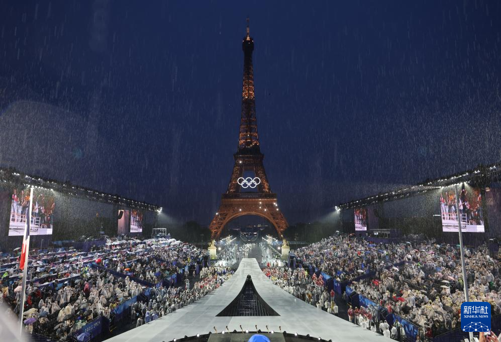 這是7月26日在特羅卡德羅廣場拍攝的開幕式現(xiàn)場。新華社發(fā)(POOL照片/帕斯卡爾·勒·塞格雷坦)