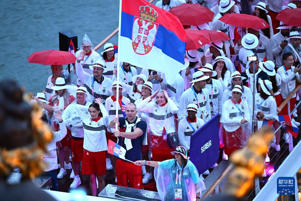 7月26日,塞爾維亞體育代表團成員在開幕式上。新華社記者 張宏祥 攝