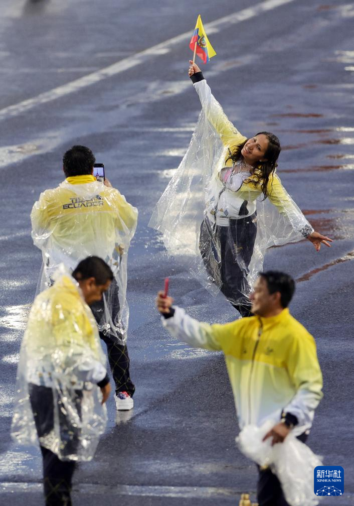7月26日,厄瓜多爾體育代表團進入特羅卡德羅廣場。新華社記者 沈伯韓 攝