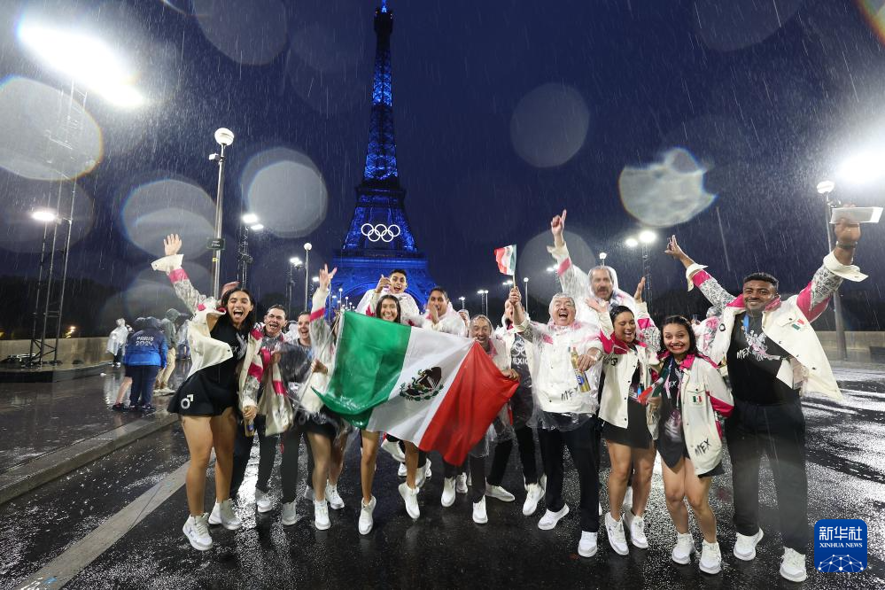 7月26日,墨西哥體育代表團成員在埃菲爾鐵塔前。新華社記者 李明 攝