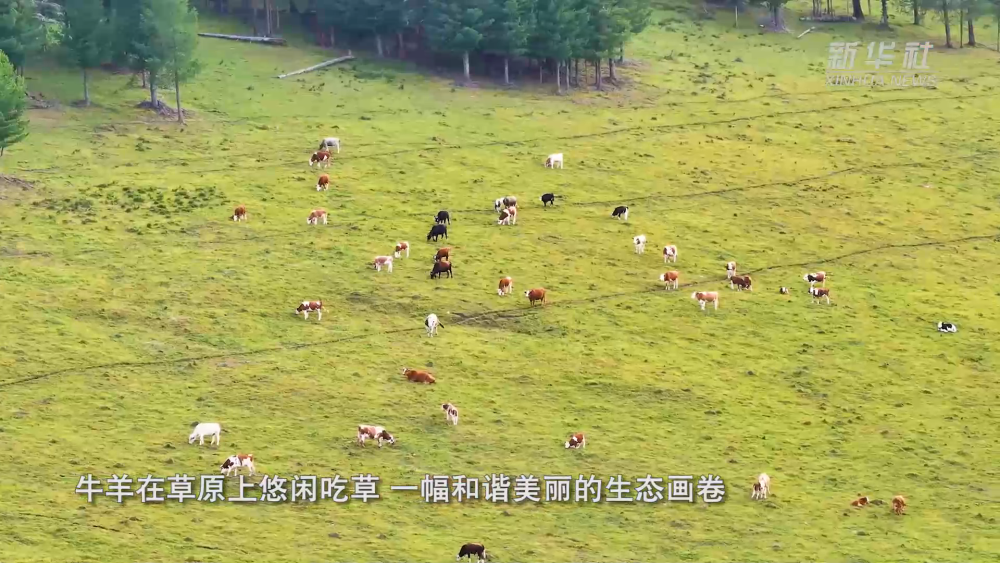 7月底,新疆阿勒泰夏牧場水草豐美,牛羊在草原上悠閑吃草,一幅和諧美麗的生態(tài)畫卷。