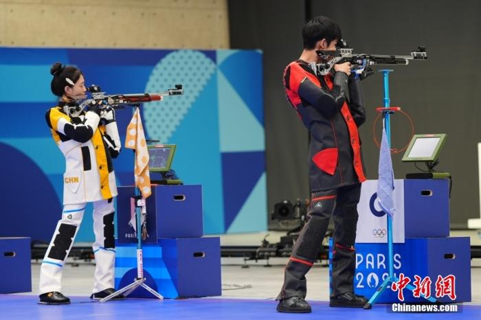 當(dāng)天,在巴黎奧運(yùn)會射擊10米氣步槍混合團(tuán)體決賽中,“00”后中國組合黃雨婷/盛李豪摘得金牌,這也是巴黎奧運(yùn)會誕生的首枚金牌。