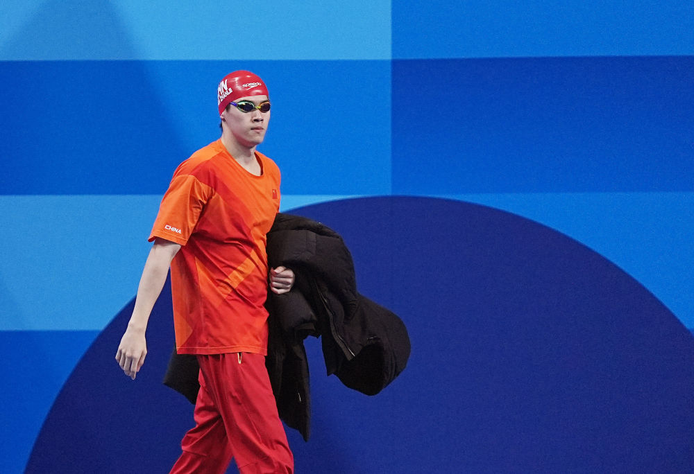 ↑中國選手潘展樂在頒獎儀式上。新華社記者 雒圓 攝