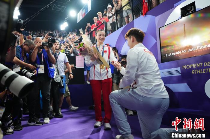 2016年里約奧運會,跳水女子三米板的頒獎典禮后,跳水運動員秦凱向何姿求婚的場景曾感動全球無數(shù)觀眾。巴黎奧運會上,浪漫一刻再度上演。