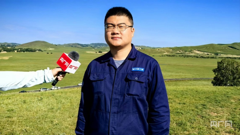 三峽集團(tuán)現(xiàn)場(chǎng)施工負(fù)責(zé)人閆青山接受采訪(央廣網(wǎng)見習(xí)記者 邵玉琴 攝)