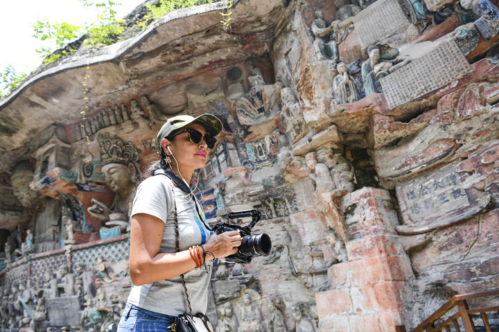 外籍游客在重慶大足石刻景區(qū)游覽(2024年7月19日攝)。 新華社記者 王全超 攝