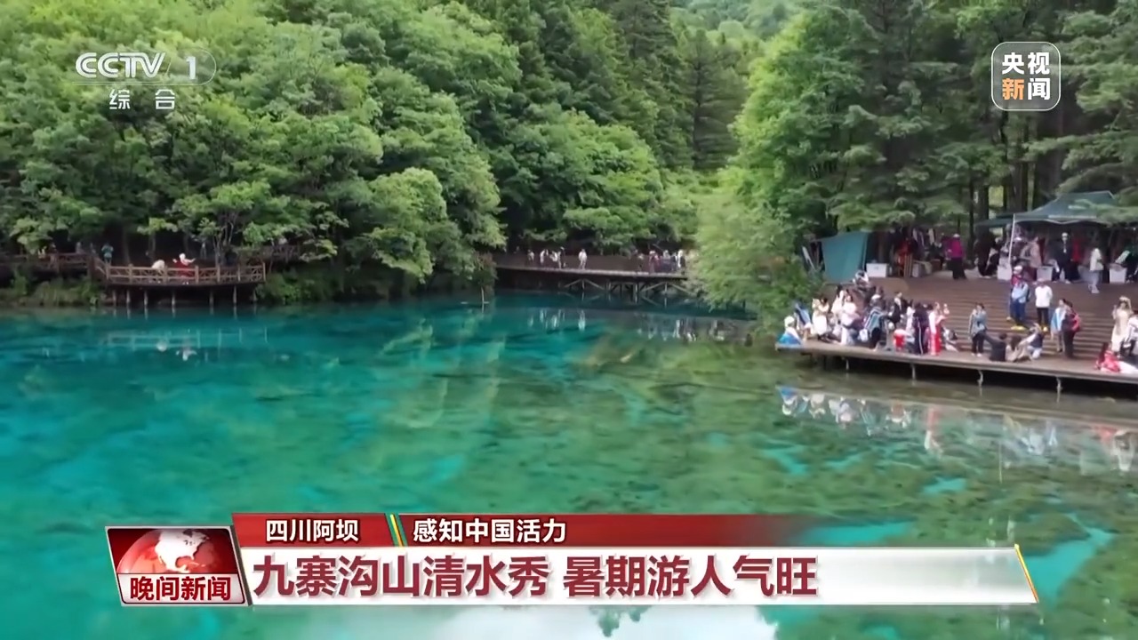 四川阿壩:九寨溝山清水秀 暑期游人氣旺