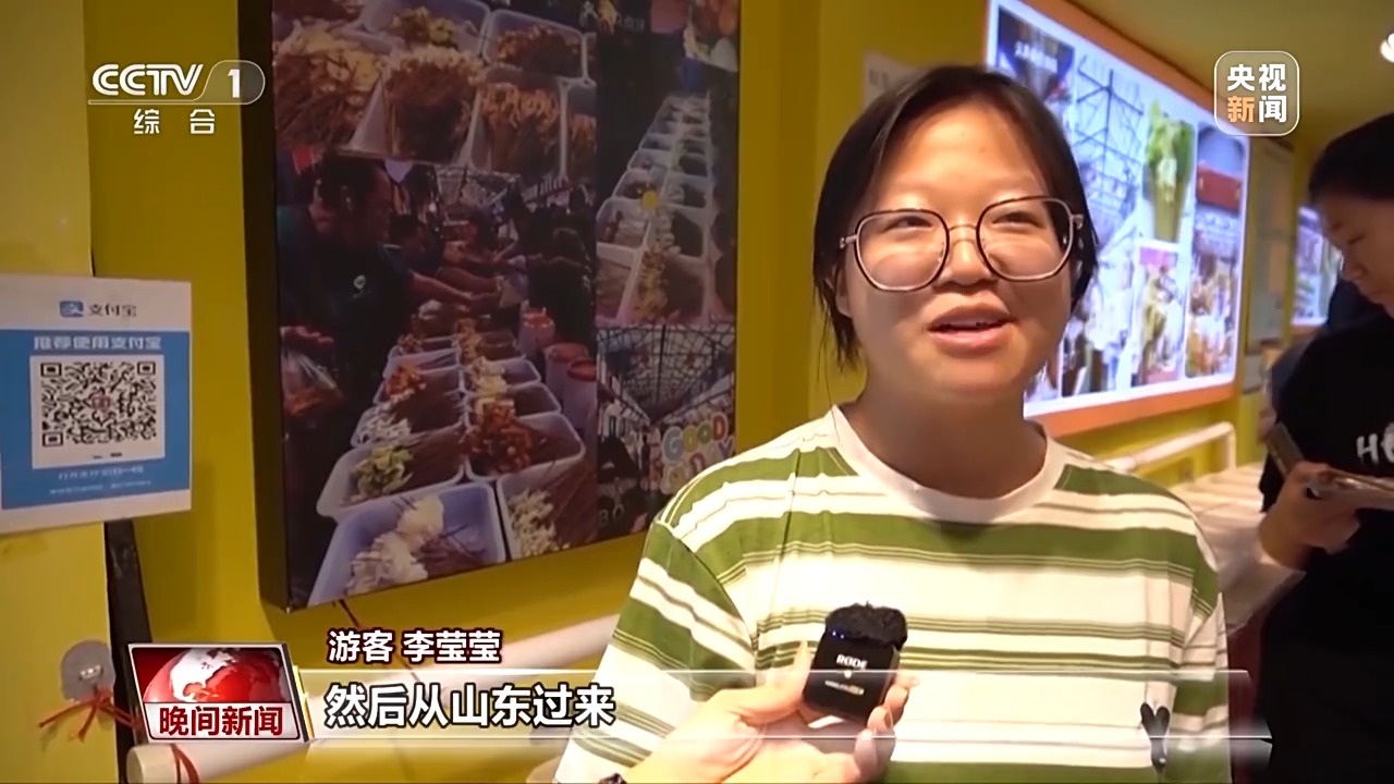 游客 李瑩瑩:之前在網(wǎng)上刷到過(guò),從山東過(guò)來(lái),也嘗嘗當(dāng)?shù)氐囊恍┨厣?,跟我們那邊還是有文化的差異,一個(gè)很新奇的體驗(yàn)。